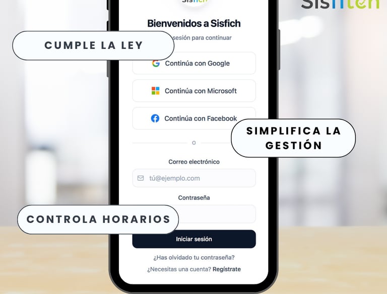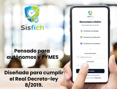 Sisfich App es la solución de registro horario diseñada para cumplir el Real Decreto-ley 8/2019.